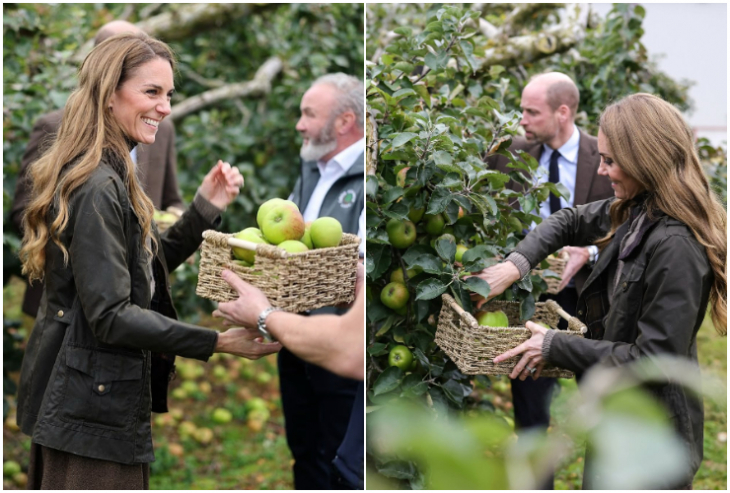 Доста интересен и забавен беше този кралски ангажимент на принцът и принцесата на Уелс. Двамата се потопиха в селския живот на Long Meadow Cider - малка семейна ферма в графство Armagh, Северна Ирландия.Кейт и Уилям бяха лично ангажирани: те участваха в беритба на ябълки, пробваха прясно изцеден ябълков сок, видяха как се прави ябълков оцет и с усмивки си сложиха престилки, за да месят хляб с картофи и ябълки, който е традиционен за фермата.
