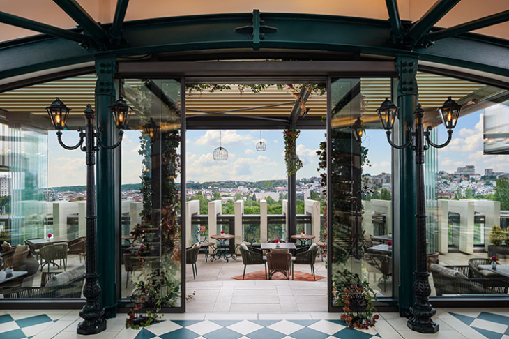 Интериорът на Vienna Café & Restaurant, вдъхновен от Ар Нуво естетиката, е пълноправен участник в това пътешествие. Шахматен под, зелени метални греди и топли дървени тонове изграждат среда, в която модерното се среща с класиката. Светлината, преминаваща през остъкления покрив, създава усещане за лекота и простор — сякаш се намирате в уютно виенско кафене.