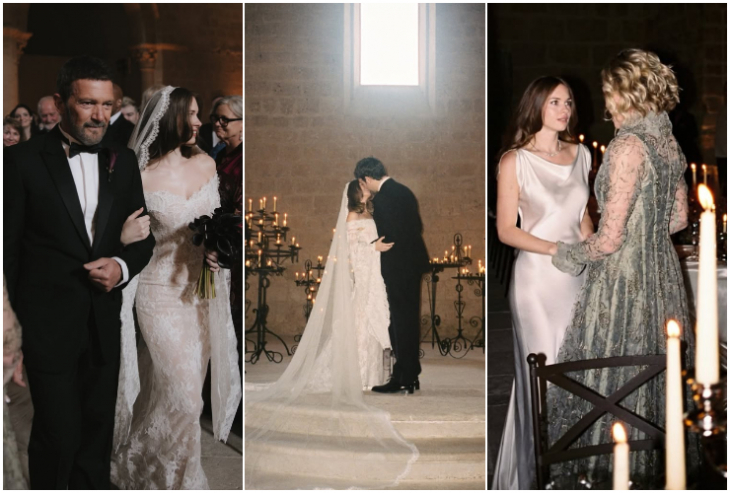 Мелани Грифит и Антонио Бандерас ожениха дъщеря си Стела. Тя каза ДА на дългогодишния си приятел Алекс.Церемонията се състоя преди няколко седмици, но чак сега семейството разпространи снимки. Сватбата бе в живописна испанска винарна — Abadía Retuerta‑Le Domaine, разположена сред лозови масиви в региона Рибера дел Дуеро.