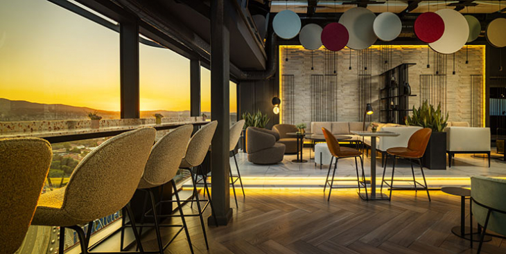 Високо над града, на върха на , превръща всяка вечер в сцена за удоволствия. Тук небето се среща с хоризонта, а коктейлите разказват истории, които остават дълго след последната глътка.В центъра на всичко е барът, където екипът от миксолози създава авторски коктейли, които носят характер, финес и собствен почерк. Менюто е истинска лаборатория на вкусовете – от изтънчени и деликатни композиции до дръзки, пикантни изненади. Сред акцентите се открояват изящният OMOTENASHI VOL.2 с японски джин, личи и саке, както и провокативният SPICY GREEN SOUR, където текила, матча и пикантни нотки се преплитат в освежаваща хармония.
