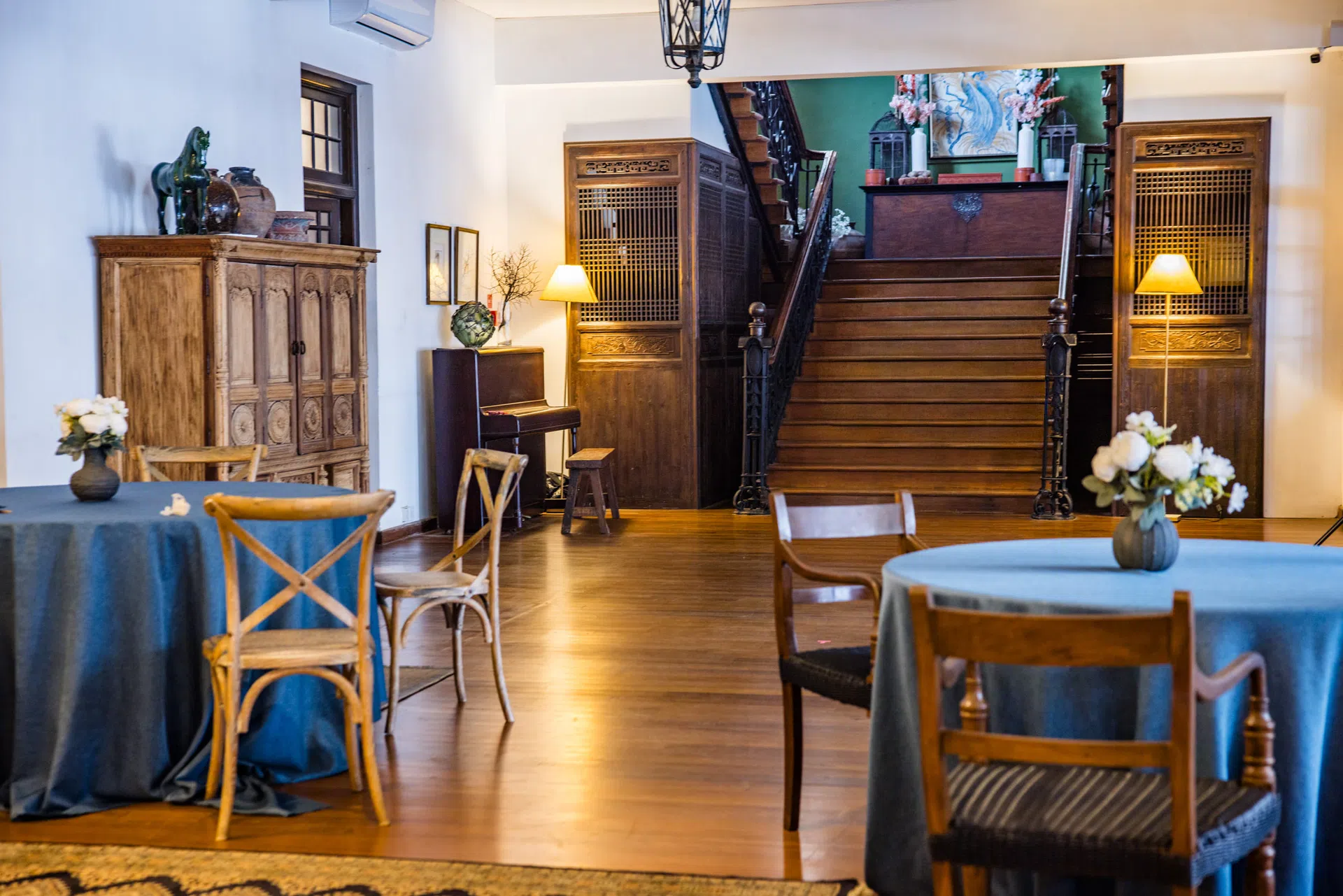 Интериорът на имението напомня художествена галерия – с подбрани артефакти, скулптури и символи от местната култура, които допълват усещането за уникалност и стил.