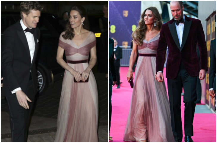 Романтична, ефирна и безупречно елегантна - така се появи принцесата на Уелс Катрин на тазгодишните награди БАФТА.Съпругата на принц Уилям избра да облече за втори път нежнорозовата рокля на Gucci, която направи своя дебют още през 2019 г. Тоалетът и създаден по поръчка специално за нея. С фино изработен силует, роклята впечатлява с леко открито рамо и меки пластове от шифон в преливащи се нюанси. Те се спускат елегантно от кадифена бордо талия, която придава дълбочина и аристократична строгост на иначе въздушната визия.