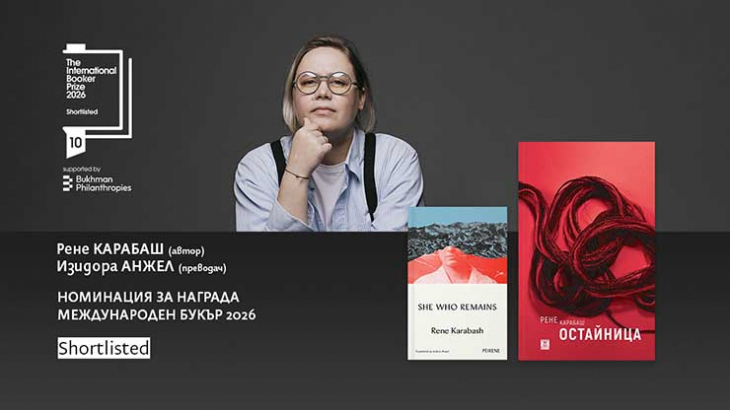Романът „Остайница“ от Рене Карабаш, преведен на английски от Изидора Анжел, е вече в краткия списък на престижната награда „Международен Букър“.Поздравления за Рене и Изидора, за Peirene Press и Sandorf Passage – издателите на романа във Великобритания и САЩ, за Гергана Панчева, управител Литературна агенция „София“!Книгата вече е издадена на дванайсет езика и се работи по преводите на още осем.